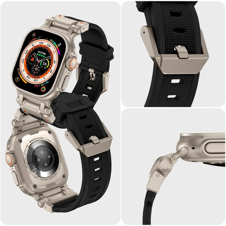 Fabriqué en acier inoxydable et silicone durable, le design audacieux et robuste de ce bracelet en fait le choix parfait pour les entraînements, les activités physiques et le port quotidien