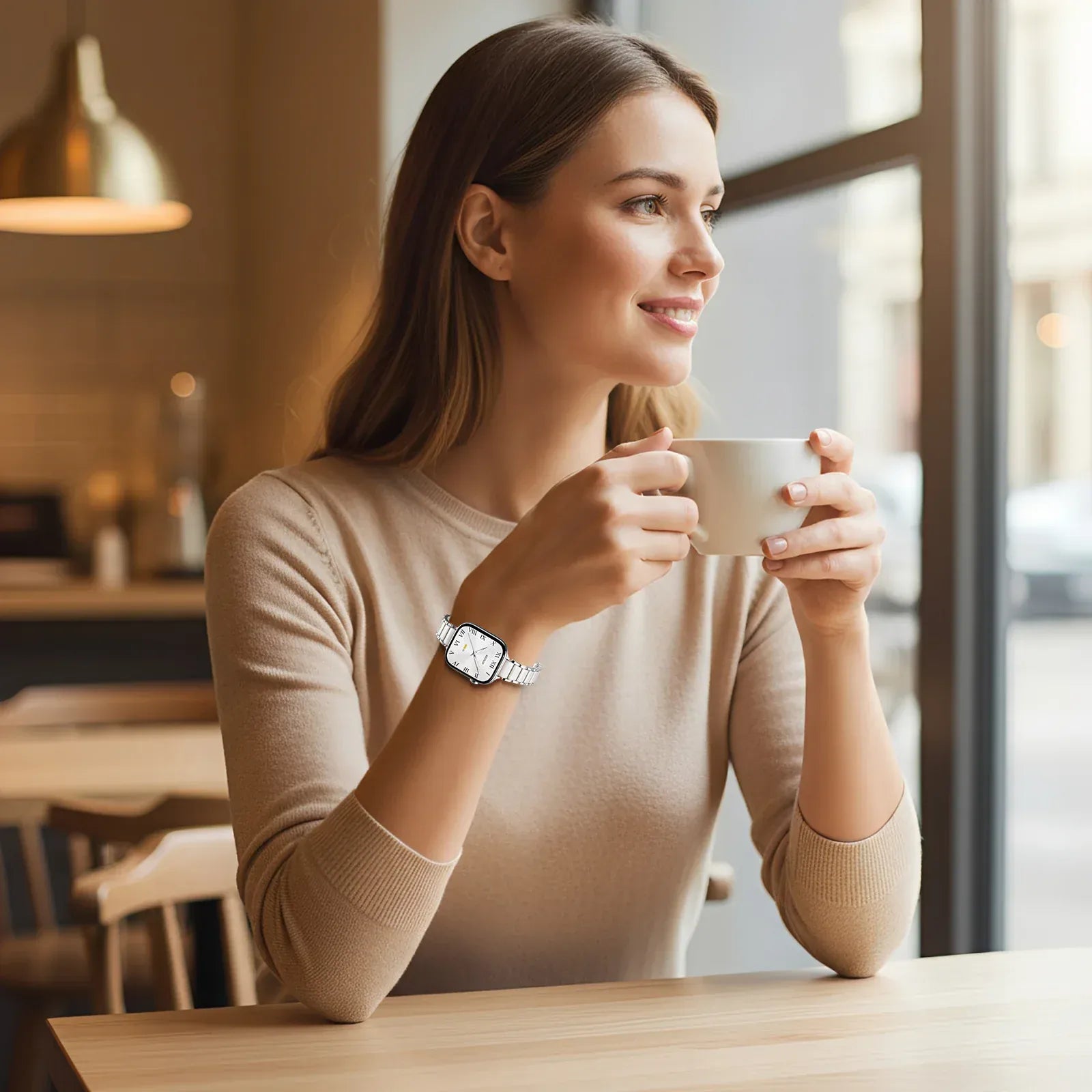 Crafted from premium stainless steel with smooth ceramic accents, this band delivers a sleek, scratch-resistant finish built for everyday wear.